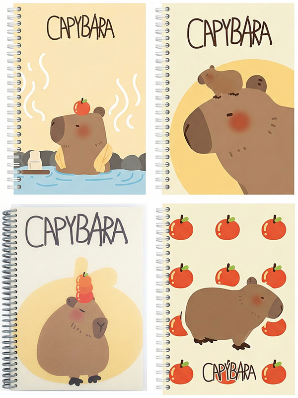 LIBRETA CAPIBARA 4 DISEÑOS - CON ESPIRAL 17,6 x 25 Cm