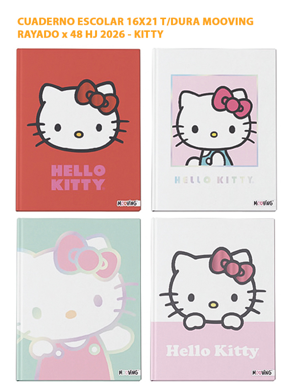CUADERNO ESCOLAR 16X21 T/DURA MOOVING RAYADO x 48 HJ 2026 - KITTY