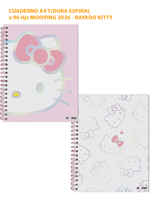 CUADERNO A4 T/DURA ESPIRAL x 96 Hjs MOOVING 2026 - RAYADO KITTY