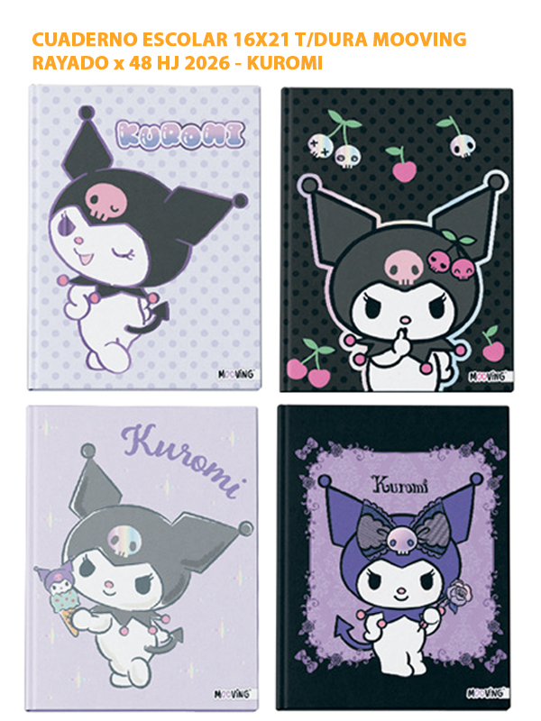 CUADERNO ESCOLAR 16X21 T/DURA MOOVING RAYADO x 48 HJ 2026 - KUROMI