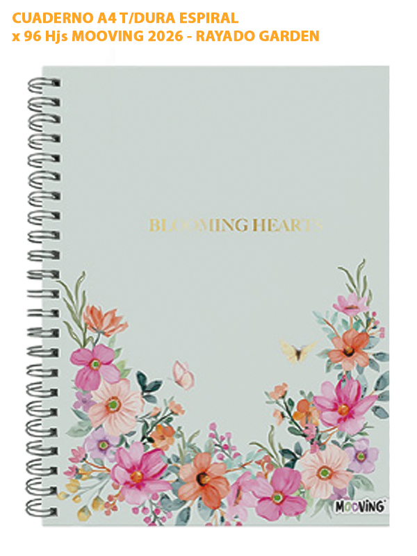 CUADERNO A4 T/DURA ESPIRAL x 96 Hjs MOOVING 2026 - RAYADO GARDEN