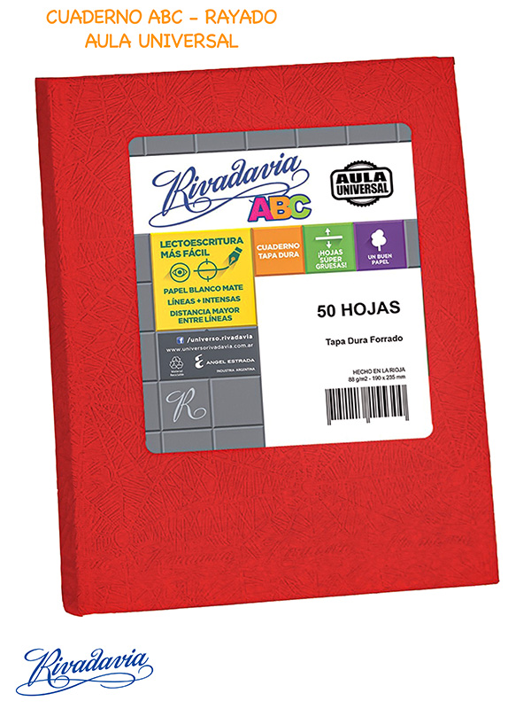 CUADERNO (ABC) 19X23 ARAÑA T/DURA x 50 RIVADAVIA - AULA UNIVERSAL / ROJO Rayado