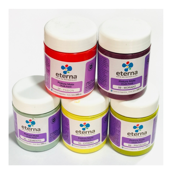La pintura mate Chalk Paint Eterna es una pintura al agua de acabado extra mate ideal para pintar muebles y objetos de gran tamaño.