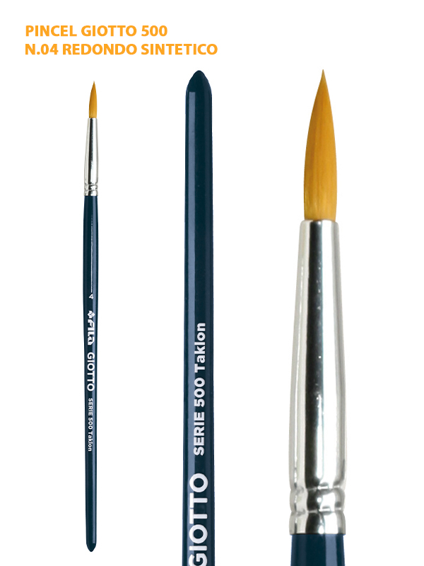 El Pincel Giotto 500 Nº4 Redondo Sintético ofrece control y definición gracias a su fibra dorada Taklon, que retiene más líquido y permite trazos limpios y uniformes.