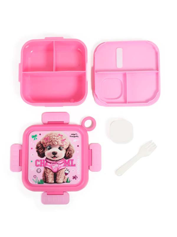 Características técnicas: -Material: Plástico PP de alta resistencia, libre de BPA -Cierre: 4 trabas laterales + tapa hermética -Interior: 3 divisiones + mini tupper + tenedor incluido -Ojal lateral de silicona para fácil agarre -Apta para microondas (solo base) -No apta para lavavajillas Tamaño ideal, diseño adorable y todo lo necesario para acompañar cada almuerzo o merienda.