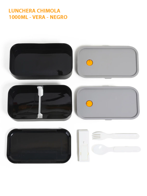 Lunchbox doble compartimento con cubiertos integrados. Su diseño compacto y funcional es perfecto para llevar comidas al trabajo, la oficina o salidas. Fabricada en plástico PP de alta resistencia, libre de BPA, garantiza seguridad y durabilidad.