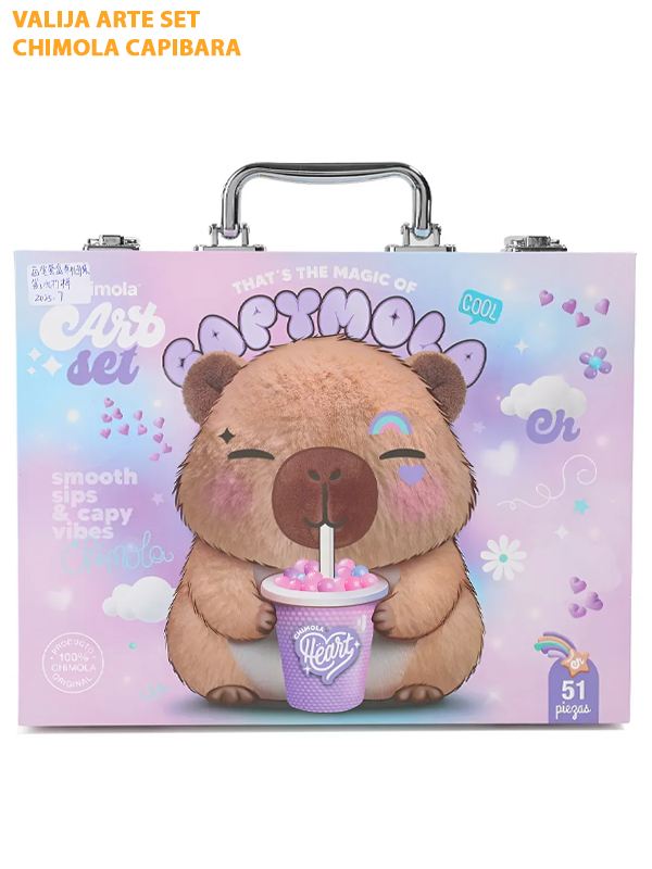 Valija resistente con diseño CapibaraPerfecto para actividades escolares, artísticas y recreativas, fomentando la creatividad y el juego.