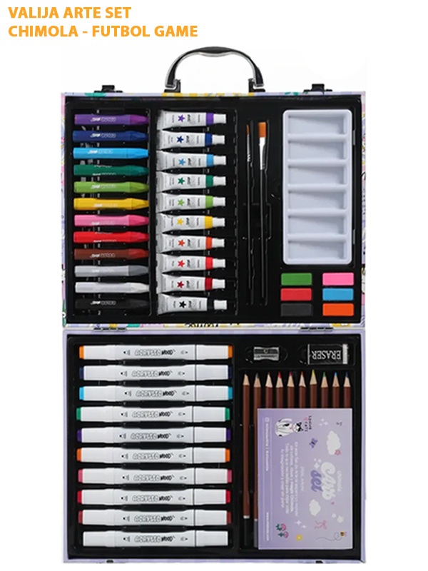 Un set creativo súper completo, presentado en una valija temática Futbol Game, ideal para chicos que aman dibujar, pintar y crear sin límites. Todos los materiales vienen perfectamente organizados para usar en casa, la escuela o llevar a cualquier lado.