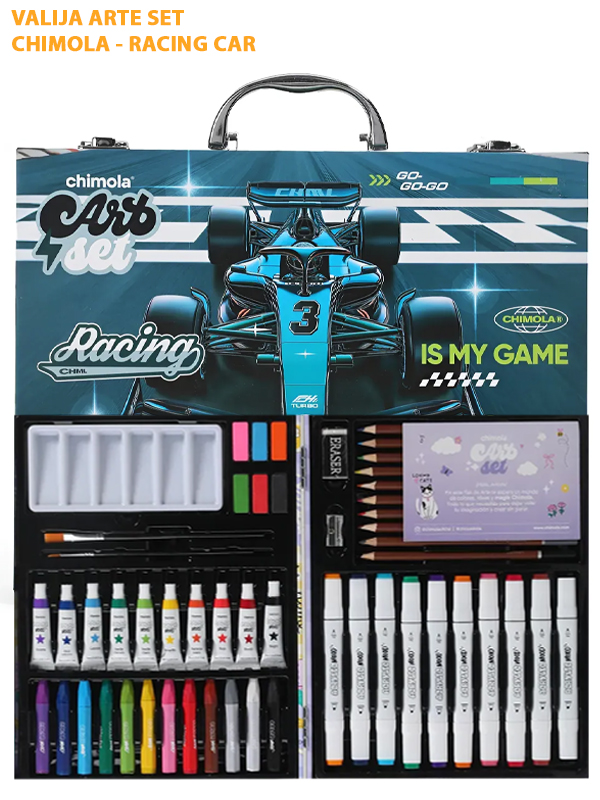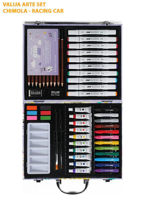 Un set creativo súper completo, presentado en una valija temática Racing Car, ideal para chicos que aman dibujar, pintar y crear sin límites. Todos los materiales vienen perfectamente organizados para usar en casa, la escuela o llevar a cualquier lado.