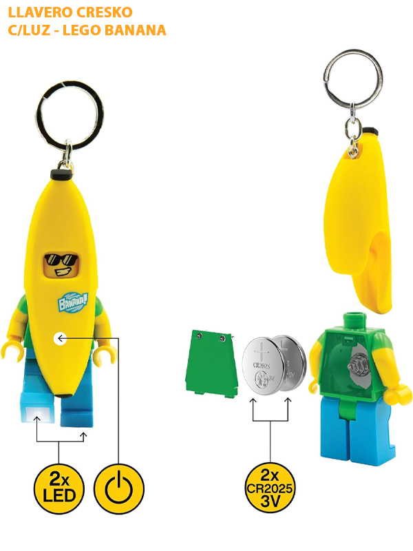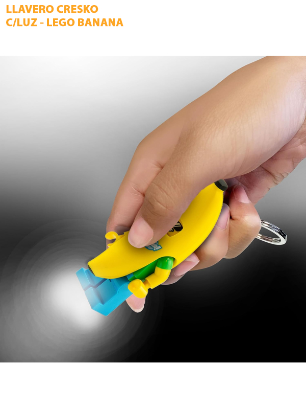 ¡Dale un toque frutal, divertido y súper luminoso a tu día con el Llavero con Linterna LEGO® Banana! Una minifigura articulada a gran escala que no solo llama la atención, sino que también ilumina tu camino gracias a sus potentes luces LED en los pies. Ideal para mochilas, bolsos y llaves.