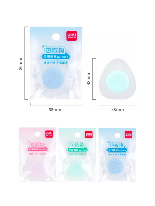 Gomas especiales para lapiceras y bolígrafos borrables, ideales para una corrección limpia y rápida.