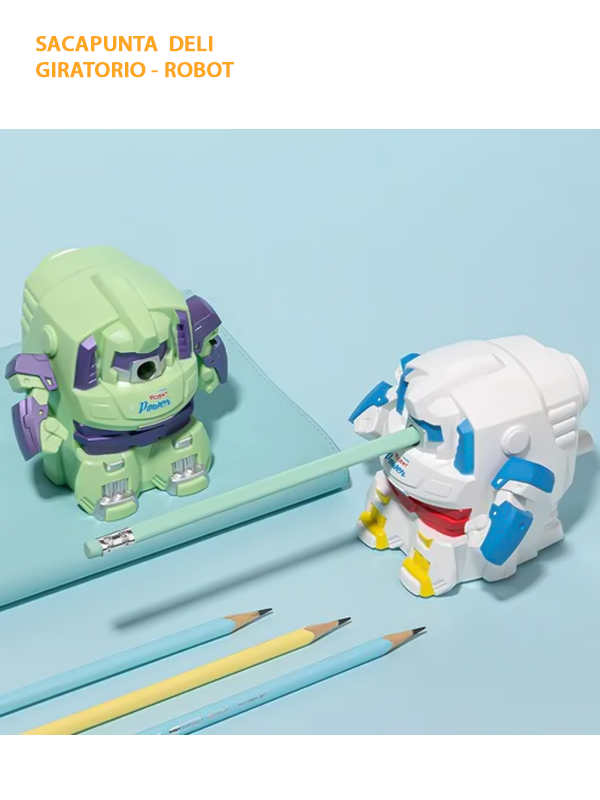 Dale un toque de tecnología y diseño a tu escritorio con el Sacapuntas Giratorio Deli Robot, ideal para estudiantes, artistas y oficinas que buscan precisión, comodidad y durabilidad.