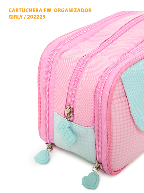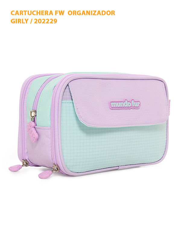 La Cartuchera FW Girly combina estilo y funcionalidad para mantener tus útiles o accesorios siempre organizados. Su diseño amplio y estructurado permite guardar todo con comodidad, mientras que su formato moderno aporta un toque femenino y elegante.