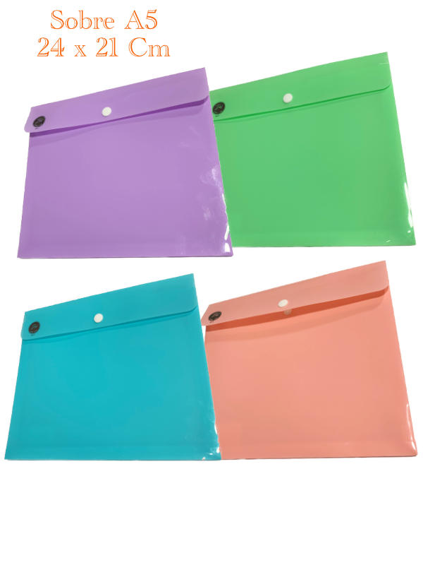 SOBRE PLASTICO PASTEL C/BOTON (A5 ) FW