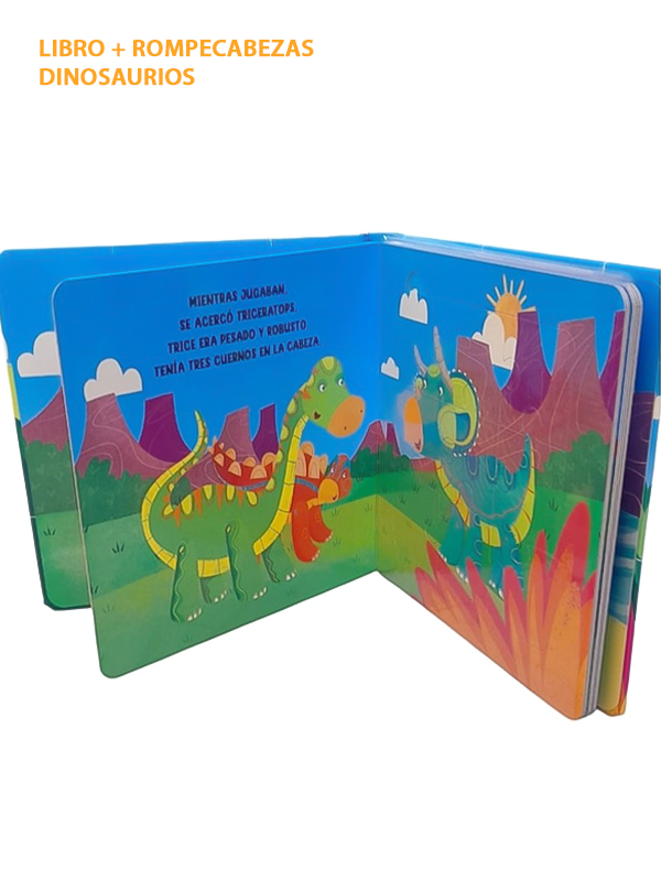 Un libro interactivo pensado para los más pequeños que combina diversión y aprendizaje. Con 10 páginas cartoné, tapas con laca sectorizada y troqueles en todas sus páginas, permite descubrir sorpresas mientras se arma el rompecabezas de dinosaurios. Su tamaño de 16 x 20 cm lo hace práctico y fácil de manejar.