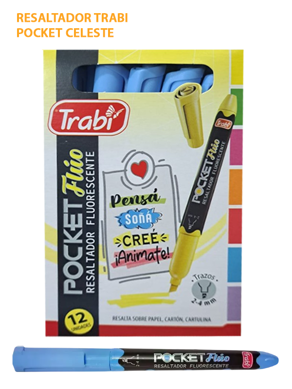 Resaltador Trabi Pocket Celeste – ¡Tu compañero ideal para destacar lo importante!