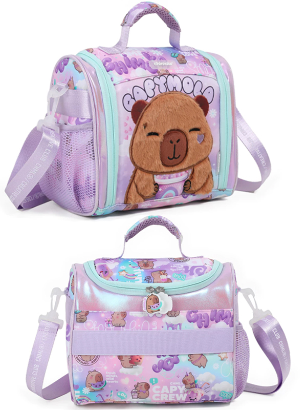 Su CARITA FRONTAL PROTAGONISTA, los detalles en PELUCHE, BRILLO Y APLIQUES DE GOMA, hacen de esta lunchera una pieza tan funcional como expresiva. Ideal para el cole o salidas, mantiene alimentos y bebidas a la temperatura justa mientras acompaña con un diseño que enamora.