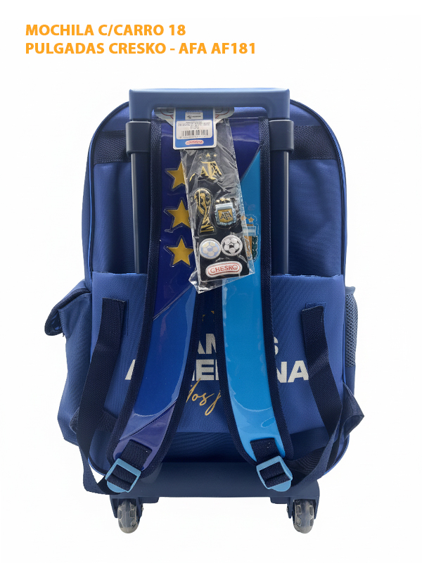 La Mochila con Carro Cresko 18” es perfecta para el día a día: resistente, espaciosa y diseñada para acompañar a chicos y chicas en el cole o cualquier actividad. Su carro reforzado permite un traslado cómodo y sin esfuerzo, mientras que sus tiras acolchadas ofrecen la opción de usarla también en la espalda.