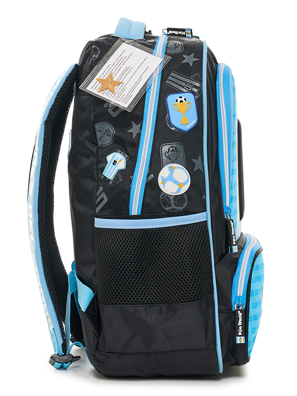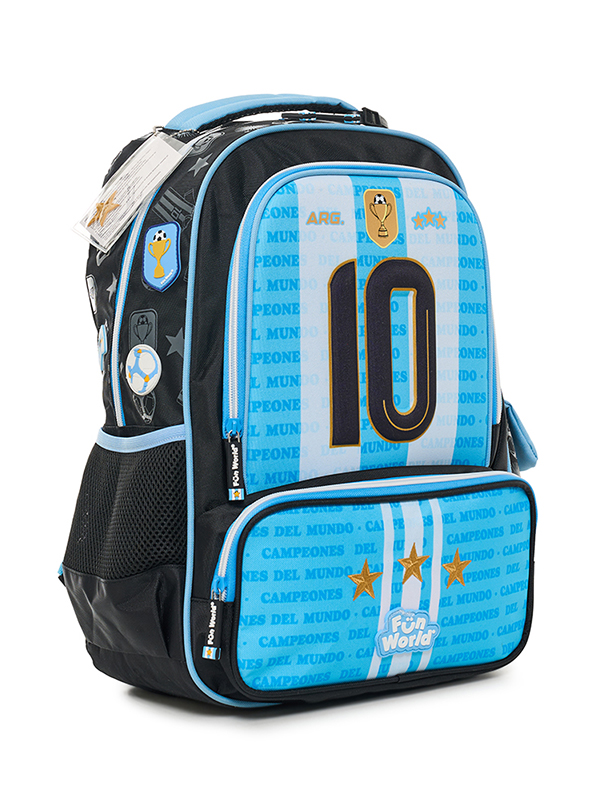 Mochila espalda FW 17 pulgadas modelo Campeones, pensada para el uso escolar diario con un estilo deportivo fuerte y detalles que marcan la diferencia. Su frente termoformado con relieve aporta resistencia y un look distintivo que destaca en góndola.