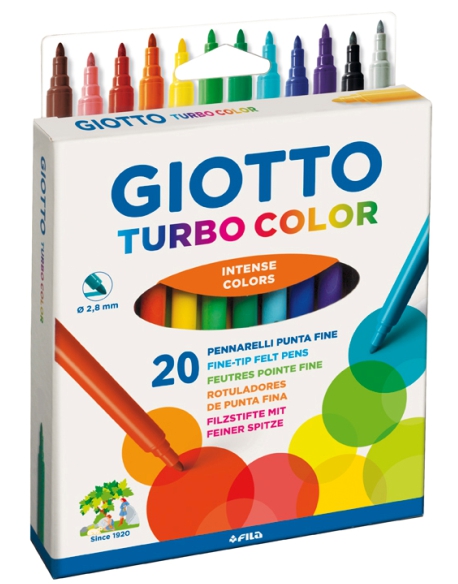 MARCADORES ESCOLARES AL AGUA GIOTTO TURBO COLOR - Ahora los niños pueden descargar sus energías sobre el nuevo Pax Giotto Turbo Color, porque su punta no se hunde y recupera su forma original. Son lavables