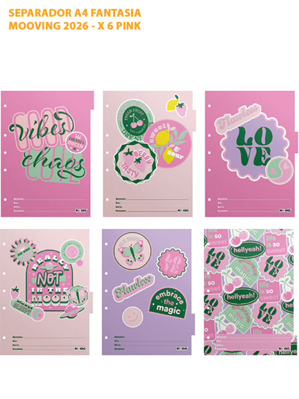 SEPARADOR A4 FANTASIA MOOVING 2026 - X 6 PINK