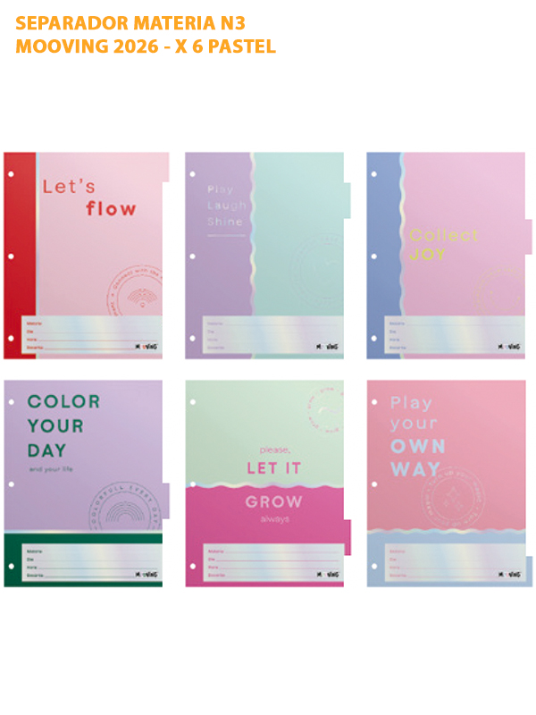 SEPARADOR MATERIA N3 MOOVING 2026 - X 6 PASTEL