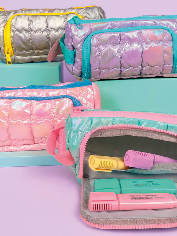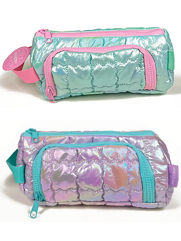 Cartuchera Rexon 2026 Holographic, con diseño moderno y efecto visual impactante que capta miradas en el punto de venta. Su formato práctico y funcional incluye doble cierre, ideal para una mejor organización de los útiles escolares.