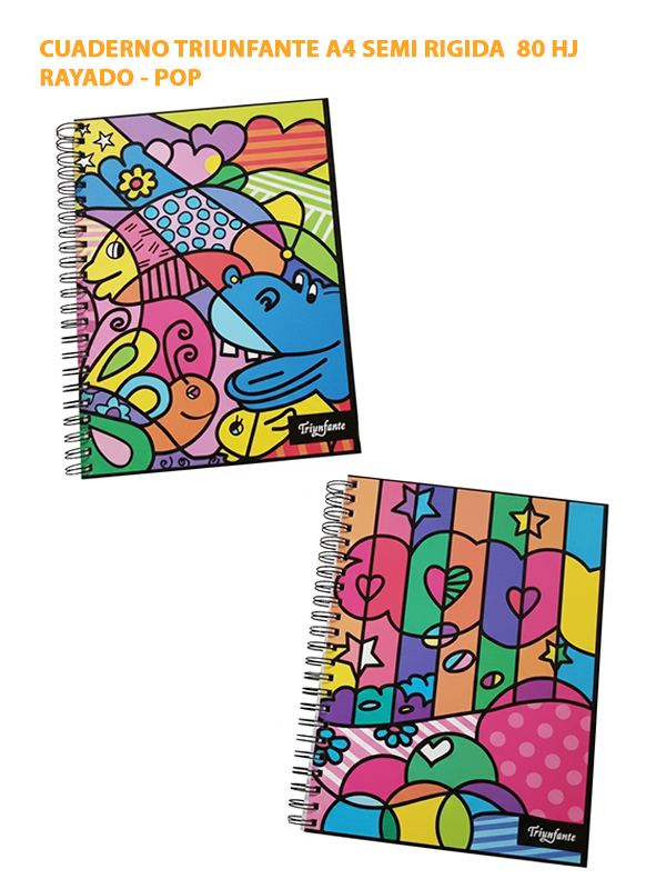 CUADERNO TRIUNFANTE A4 SEMI RIGIDA 80 HJ RAYADO - POP