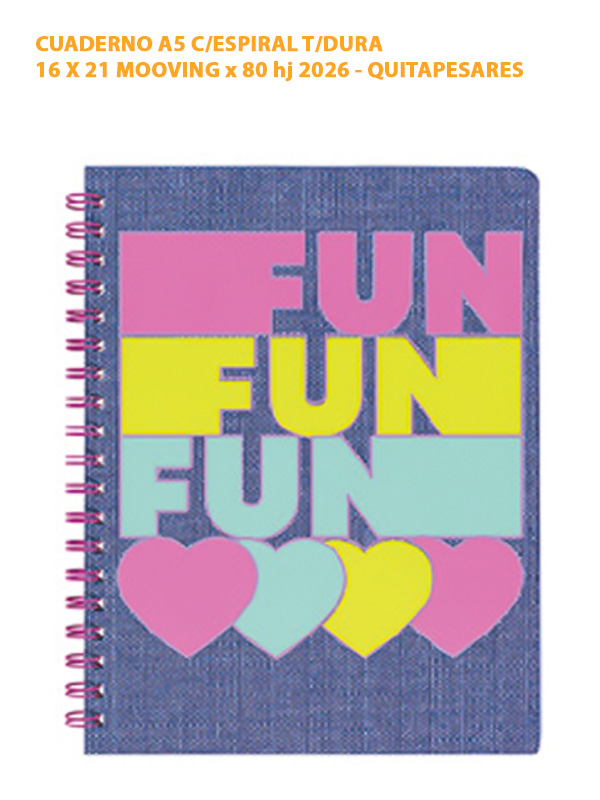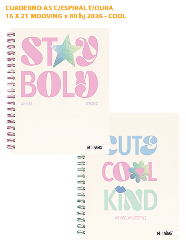 CUADERNO A5 C/ESPIRAL T/DURA 16 X 21 MOOVING x 80 hj 2026 - COOL