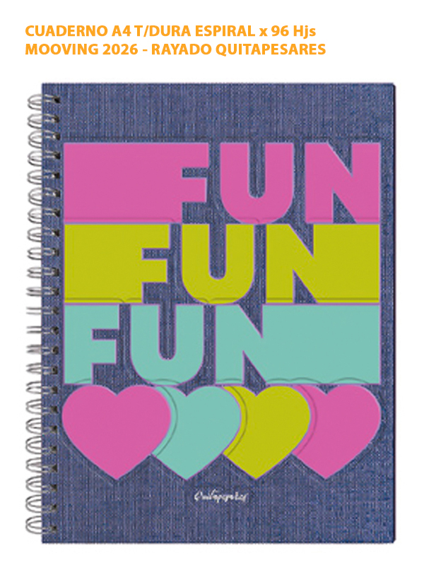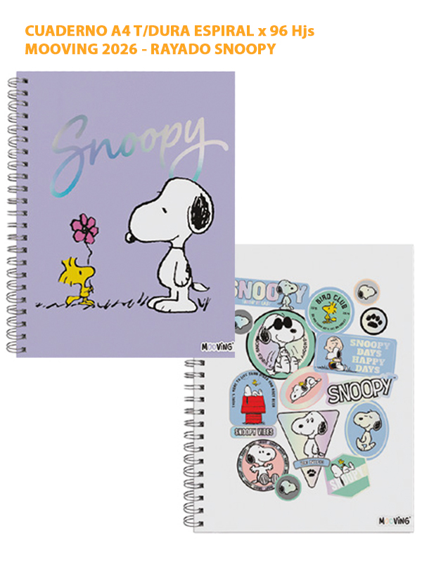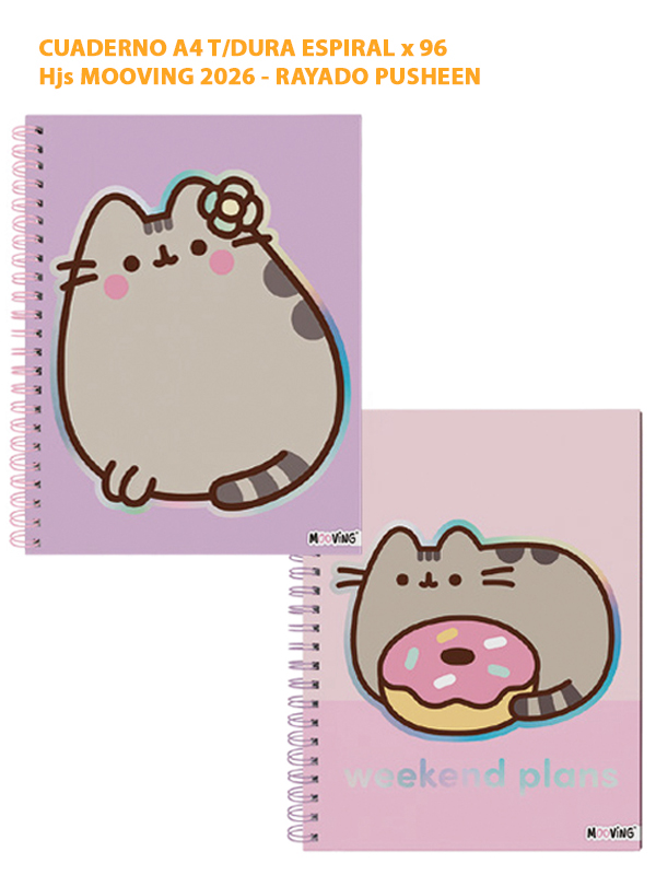 CUADERNO A4 T/DURA ESPIRAL x 96 Hjs MOOVING 2026 - RAYADO PUSHEEN