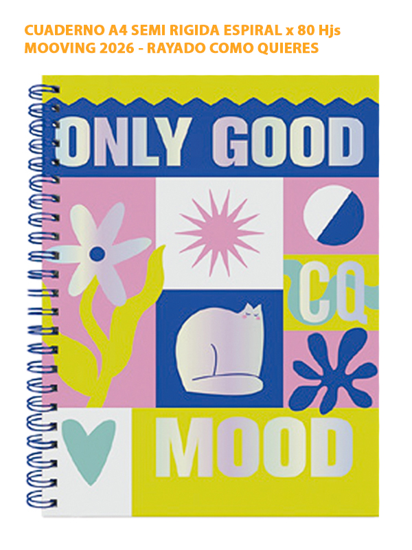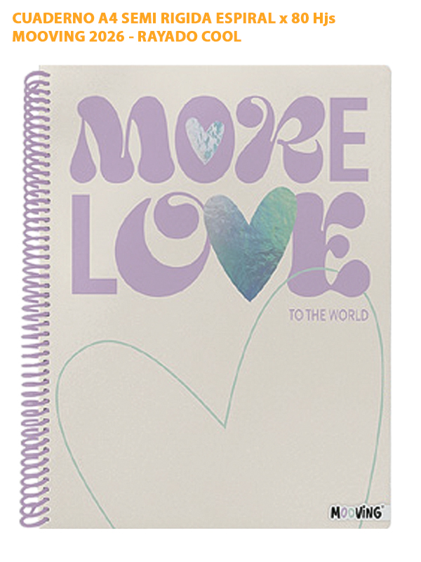 CUADERNO A4 SEMI RIGIDA ESPIRAL x 80 Hjs MOOVING 2026 - RAYADO COOL