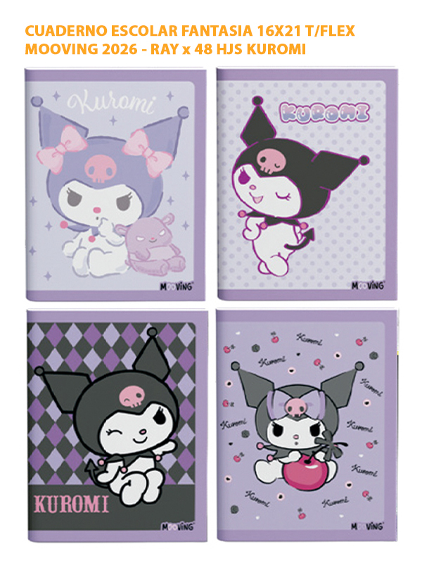CARTUCHERA TELA CUADRUPLE MOOVING 2026 - KUROMI