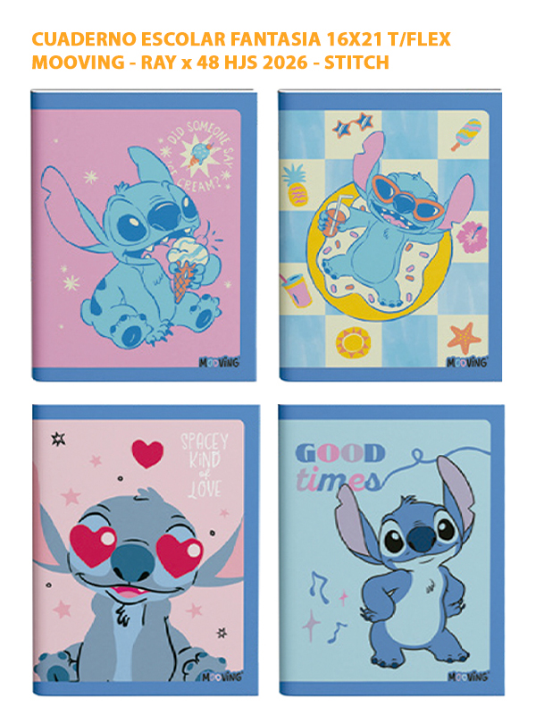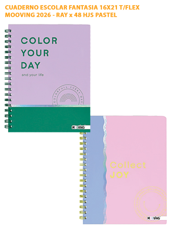 CUADERNO ESCOLAR FANTASIA 16X21 T/FLEX MOOVING 2026 - RAY x 48 HJS PASTEL