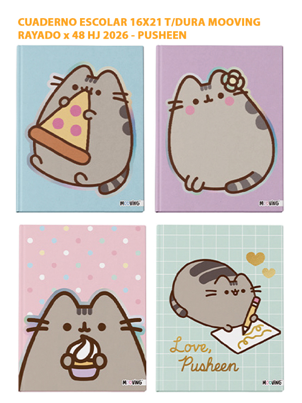 CUADERNO ESCOLAR 16X21 T/DURA MOOVING RAYADO x 48 HJ 2026 - PUSHEEN