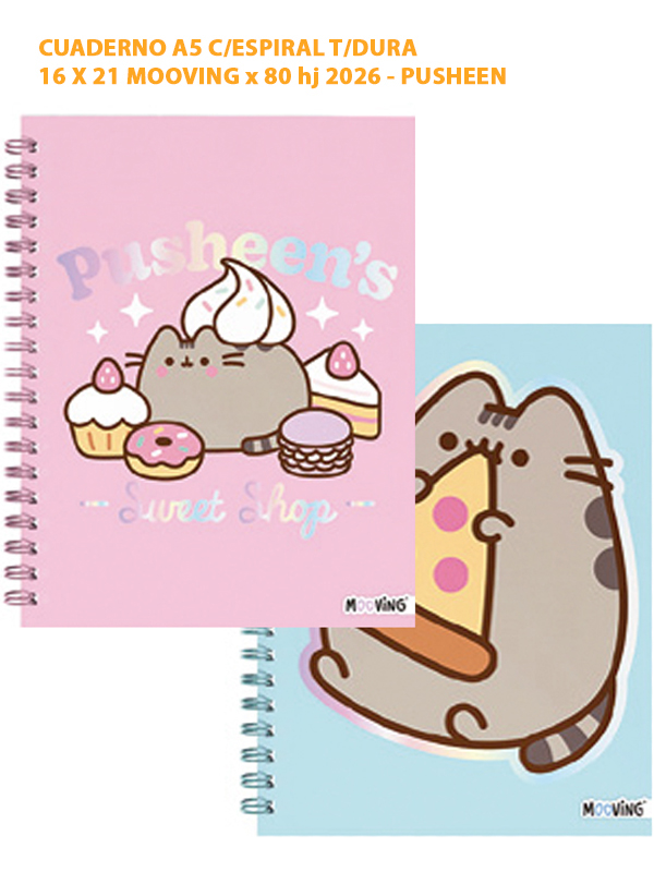 CUADERNO A5 C/ESPIRAL T/DURA 16 X 21 MOOVING x 80 hj 2026 - PUSHEEN