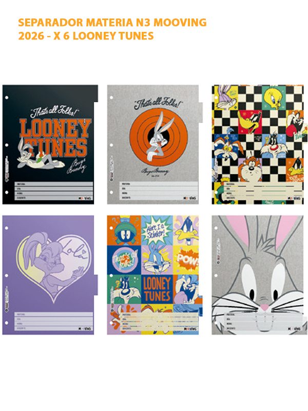 SEPARADOR MATERIA N3 MOOVING 2026 - X 6 LOONEY TUNES