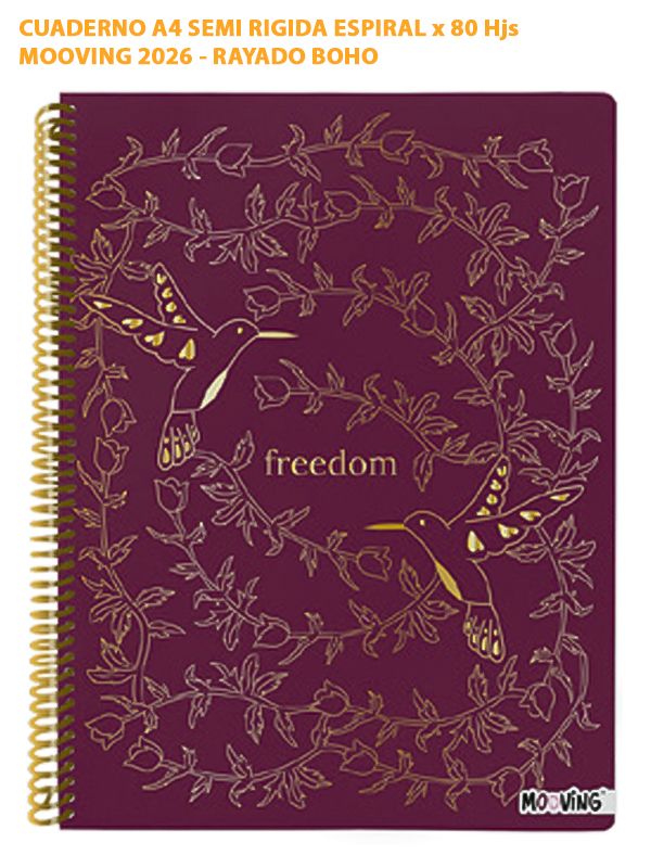CUADERNO A4 SEMI RIGIDA ESPIRAL x 80 Hjs MOOVING 2026 - RAYADO BOHO