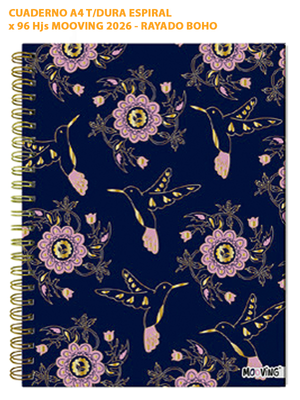 CUADERNO A4 T/DURA ESPIRAL x 96 Hjs MOOVING 2026 - RAYADO BOHO