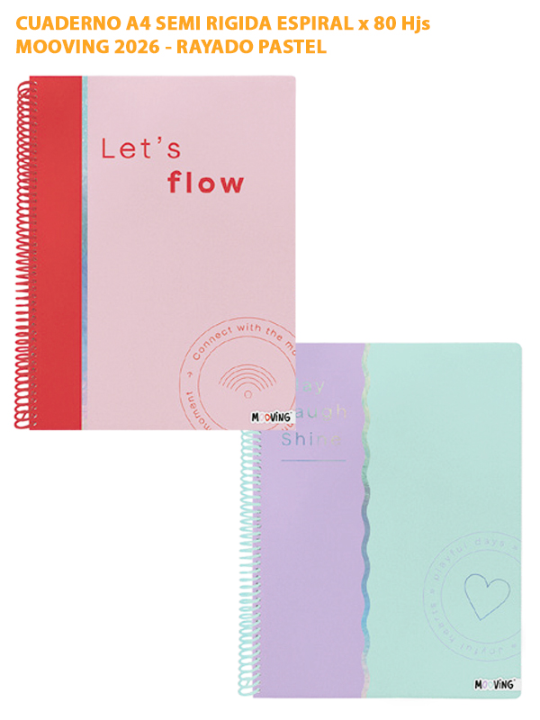 CUADERNO A4 SEMI RIGIDA ESPIRAL x 80 Hjs MOOVING 2026 - RAYADO PASTEL