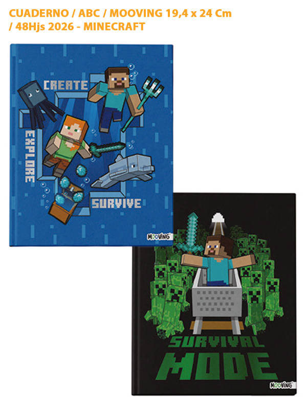 CUADERNO / ABC / MOOVING 19,4 x 24 Cm / 48Hjs 2026 - MINECRAFT