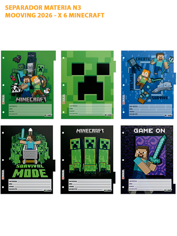 SEPARADOR MATERIA N3 MOOVING 2026 - X 6 MINECRAFT
