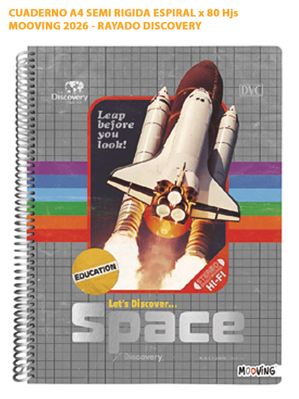 CUADERNO A4 SEMI RIGIDA ESPIRAL x 80 Hjs MOOVING 2026 - RAYADO DISCOVERY