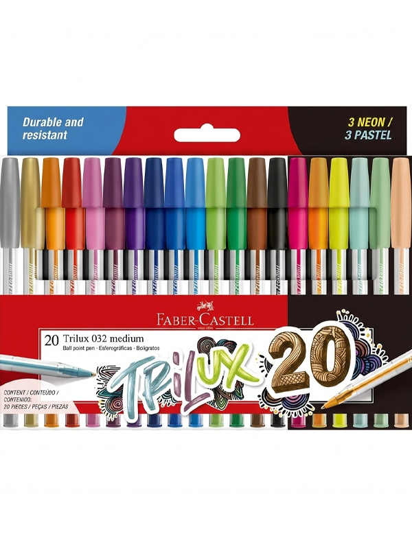 BOLIGRAFO FABER - TRILUX 032 / Blister X 4 COLORES / NEGRO / ROJO / 2 AZULES