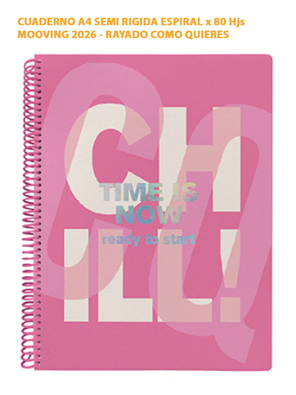 CUADERNO A4 SEMI RIGIDA ESPIRAL x 80 Hjs MOOVING 2026 - RAYADO COMO QUIERES