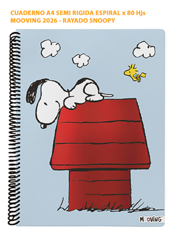 CUADERNO A4 SEMI RIGIDA ESPIRAL x 80 Hjs MOOVING 2026 - RAYADO SNOOPY