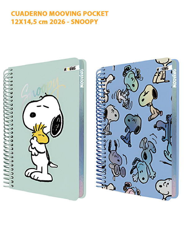 CUADERNO A5 C/ESPIRAL T/DURA 16 X 21 MOOVING x 80 hj 2026 - SNOOPY