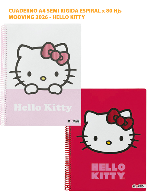 CUADERNO A4 SEMI RIGIDA ESPIRAL x 80 Hjs MOOVING 2026 - HELLO KITTY