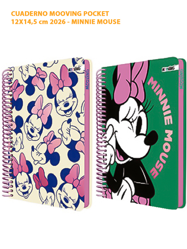 CUADERNO A5 C/ESPIRAL T/DURA 16 X 21 MOOVING x 80 hj 2026 - MINNIE