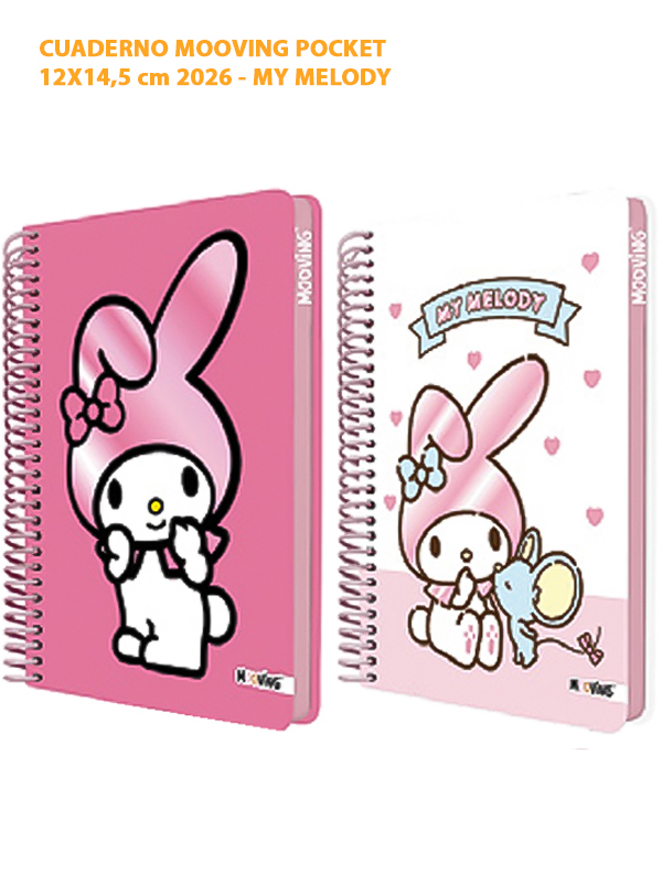 CUADERNO A5 C/ESPIRAL T/DURA 16 X 21 MOOVING x 80 hj 2026- HELLO KITTY