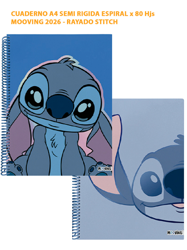 CUADERNO A4 SEMI RIGIDA ESPIRAL x 80 Hjs MOOVING 2026 - RAYADO STITCH